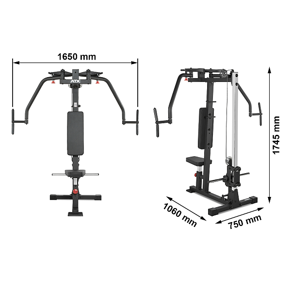 Description: A combined trainer for the chest, lateral, and rear shoulder muscles with an extended range of motion. Five adjustable range limiter settings allow optimal start and end positions. Horizontal and two vertical handle positions enable precise targeting of the desired muscle group. Seat height is adjustable in four positions for comfortable and ergonomic training.