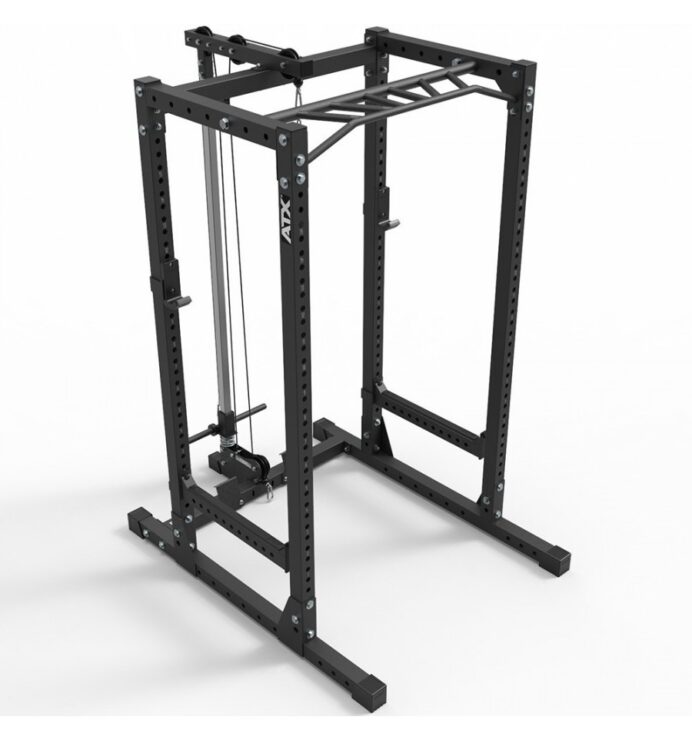 Description: The ATX-PRX-720-LTO power rack with lat pulldown option and free weights provides a complete training system, combining a classic power rack with lat pulldown and free weight functionality. Perfect for both home and commercial gyms.
