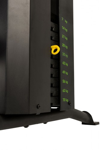 Includes 10 weight blocks of 7 kg each (total 70 kg).