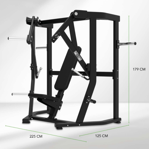 “Platinum Wide Chest Press Plate loaded V-series” machine designed for intensive chest workouts. This machine provides a powerful pressing motion that effectively engages the outer chest muscles. The wider hand position activates the outer chest muscles, building a broader and stronger chest. Shoulders and triceps are also trained. The load can be adjusted with weight plates, allowing training according to your needs and fitness level.