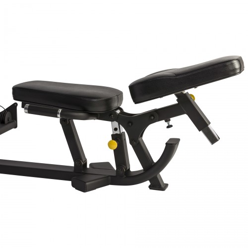 Regulējams leņķis ļauj pielāgot treniņa intensitāti un kustības amplitūdu. Lielais, neslīdošais pamats nodrošina stabilitāti un drošību pat pie lielām slodzēm. Ergonomiska konstrukcija samazina stresa slodzi uz ceļiem un muguru, vienlaikus maksimāli aktivizējot augšstilbu, sēžas un ikru muskuļus.