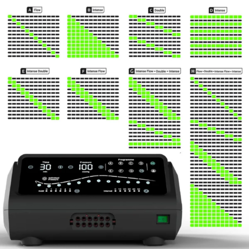 Ar astoņām programmām vari izvēlēties sev piemērotāko masāžas intensitāti, no maigas iesildīšanās līdz intensīvai asinsrites stimulēšanai. Spiedienu un laiku var regulēt pēc individuālām vēlmēm.