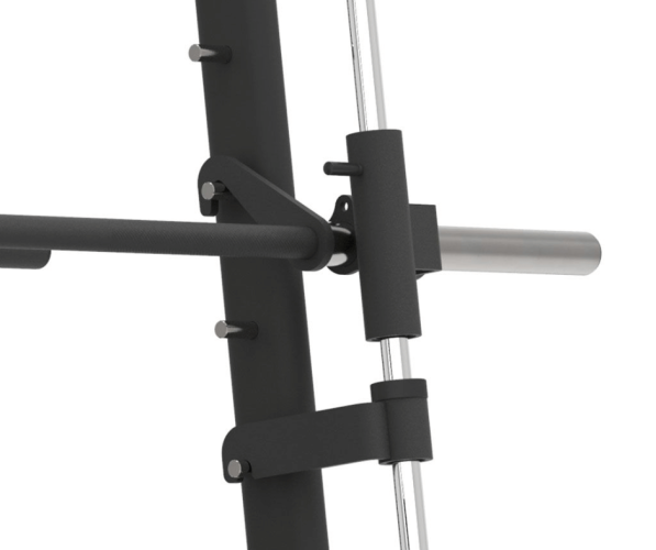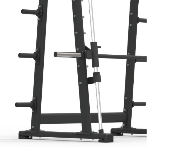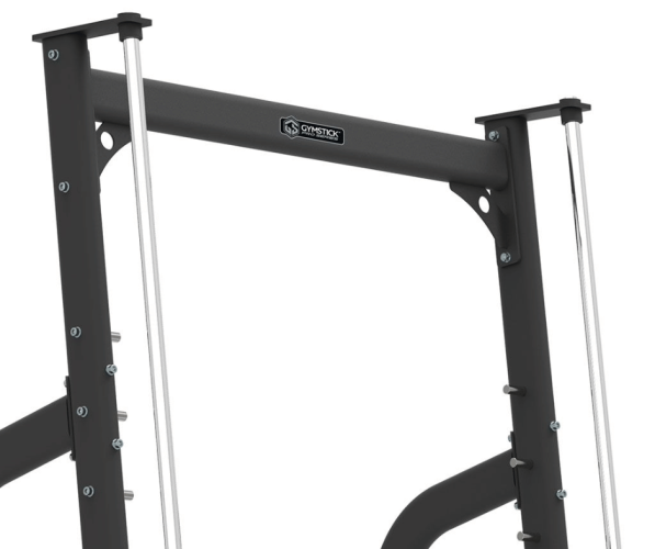 Тренажер «Gymstick Smith» оснащен прочной стальной рамой с интегрированной системой перемещения штанги, закрепленной на основании. На боковых сторонах машины расположены шесть держателей для дисков диаметром 50 мм. Гриф Смита оборудован регулируемыми стопорами для дополнительной безопасности. Прочная конструкция делает тренажер подходящим для коммерческого использования.